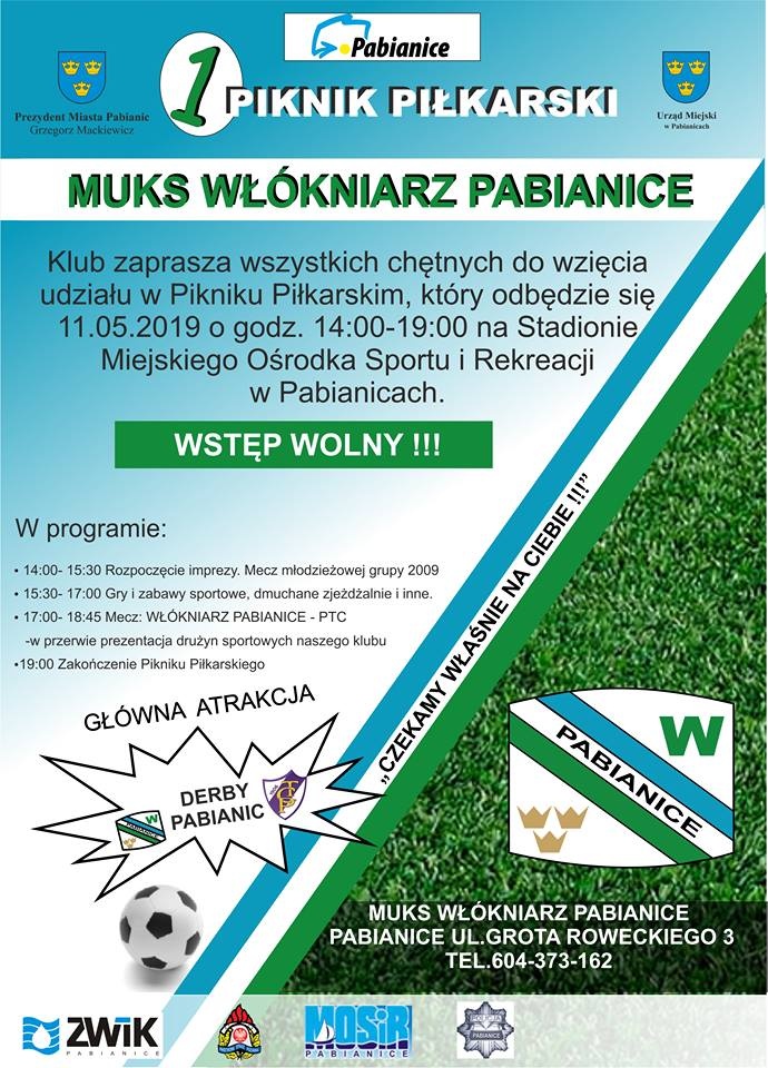 Wyjątkową oprawę będą miały nadchodzące derby Pabianic, w których Włókniarz podejmie PTC. To spotkanie 24. kolejki łódzkiej klasy okręgowej zaplanowano na 11 maja (początek o godz. 18), a rywalizacja Włókniarza z PTC będzie częścią piłkarskiego pikniku.