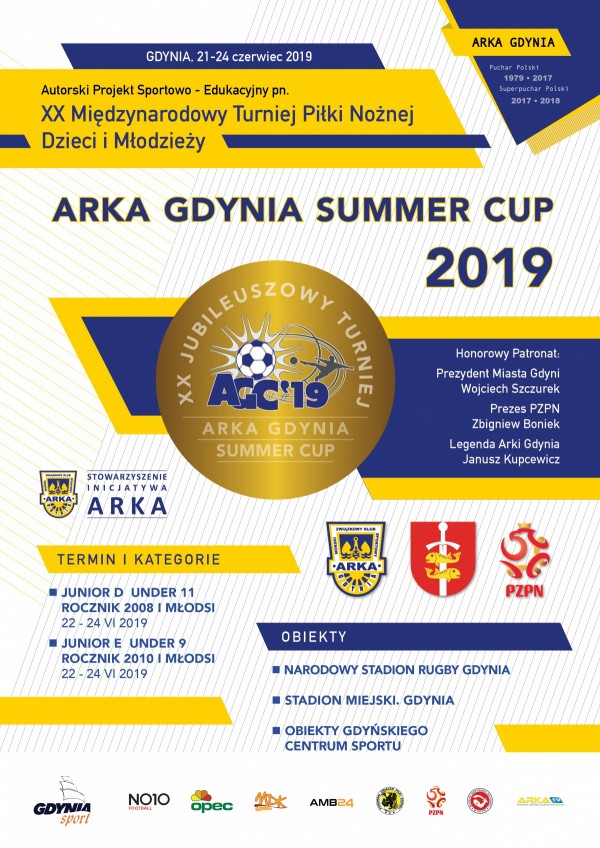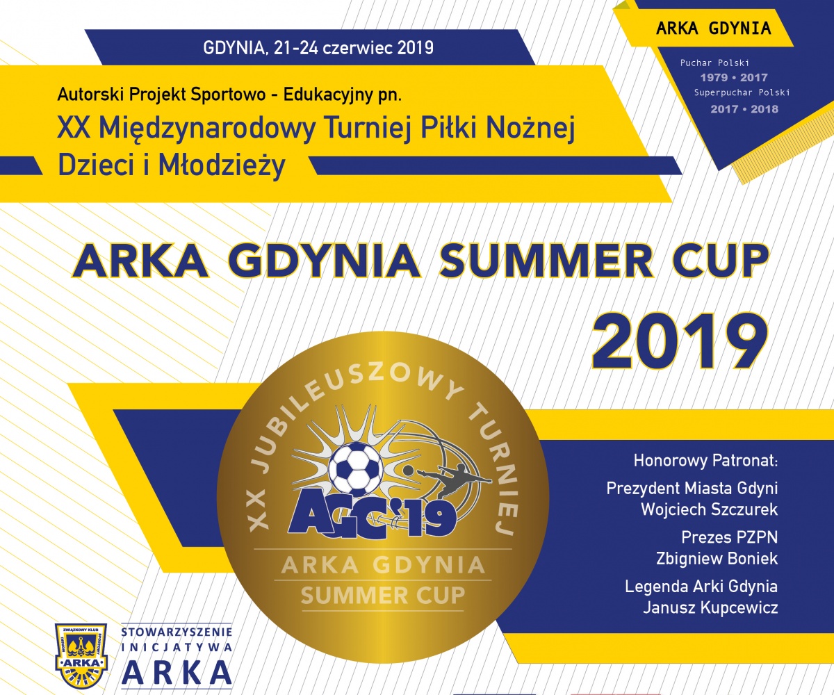 W dniach 22-24 czerwca 2019 w Gdyni zostanie rozegrany XX Międzynarodowy Turniej Piłki Nożnej Dzieci i Młodzieży Arka Gdynia Summer Cup 2019. Organizatorzy zapraszają do udziału w imprezie drużyny zainteresowane rywalizacją w dwóch kategoriach wiekowych: U-11 (rocznik 2008 i młodsi) oraz U-9 (rocznik 2010 i młodsi).